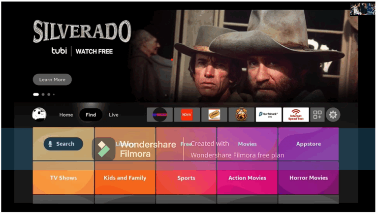 4.Once the Downloader app is installed, return to the Firestick home screen. In the menu bar, select ‘Settings