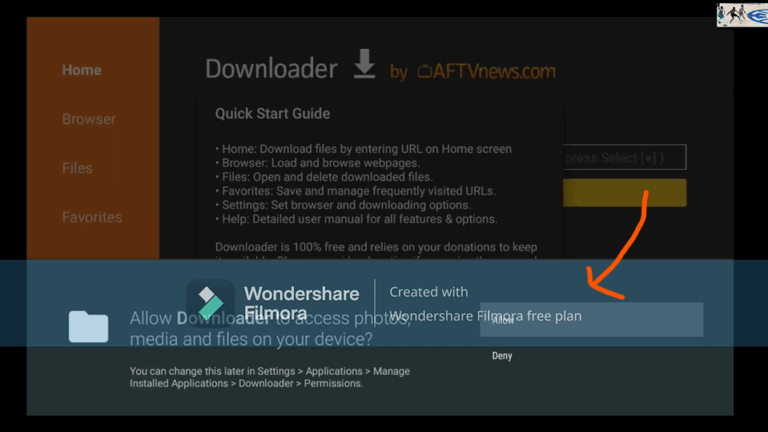 6) When you start the app for the first time, you must grant the downloader access to your file system. Select the option “Allow”.